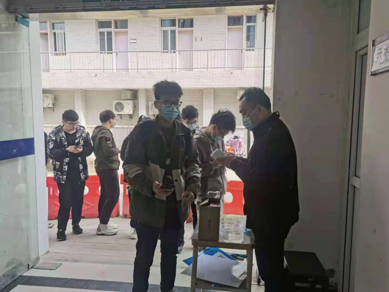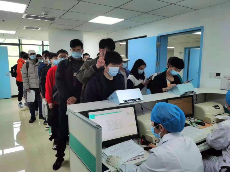 我院学子到达指定接种医院后,井然有序进行测温