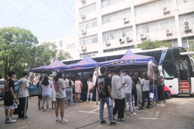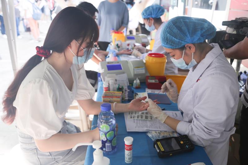 新闻网讯(记者袁晚露 实习记者严橙紫)6月1日,我院携手武汉血液中心、同济医院、协和医院在北教学楼旁广场举办 “爱心助力 圆梦六一”无偿献血志愿服务活动。我院444名学生积极参与其中,当日献血量达155400ml。他们用行动凝聚爱心,传递温暖正能量。
