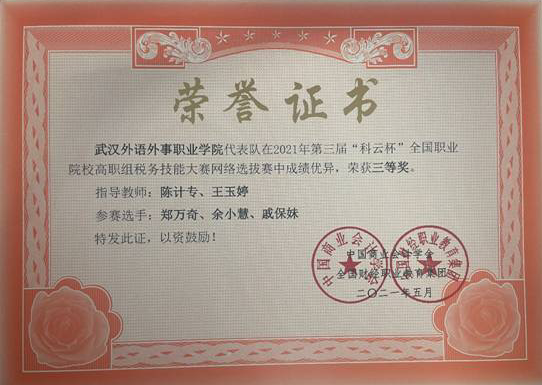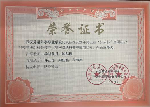 新闻网讯(通讯员王晓宁 杨胡秋月)我院财经与商贸学部两支代表队在第三届“科云杯”全国职业院校高职组税务技能大赛中沉着应战,表现突出,在网络选拔赛环节斩获两项三等奖。