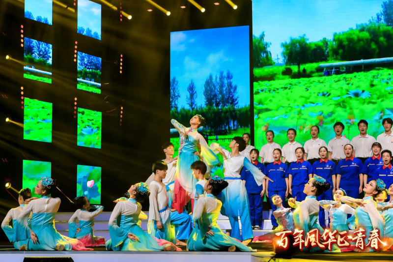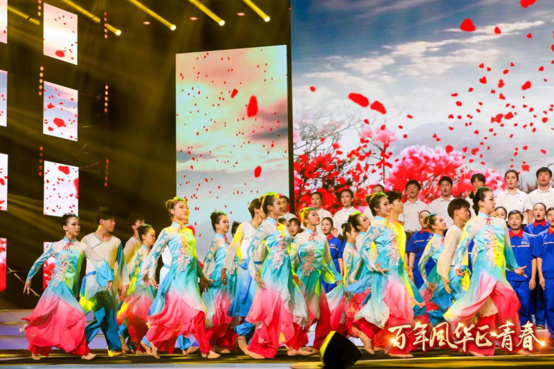 新闻网讯(通讯员 李诗媛 吕雯靖 )6月24日晚,由团省委举办的“百年风华正青春”歌咏会在湖北广播电视台演播厅精彩上演,我院大学生艺术团、英才领航班学员40人与中国石化湖北石油分公司联合表演了歌曲联唱《洪湖水浪打浪》《映山红》,回首百年光辉历程,展望未来光明前景。