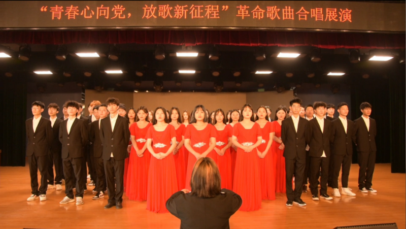 各学部参演队伍用铿锵的旋律、嘹亮的歌声、饱满的状态依次登台演唱,用歌声带领全校师生重拾红色记忆,回顾峥嵘岁月,诠释对党和国家的热爱之情。