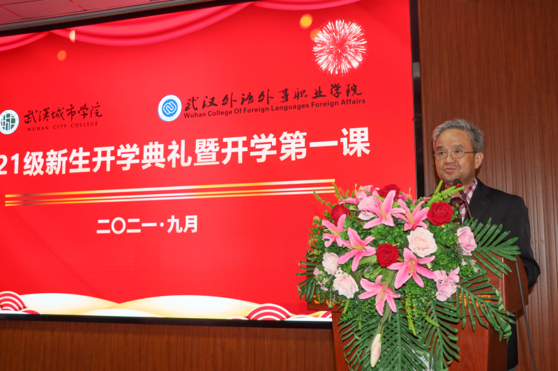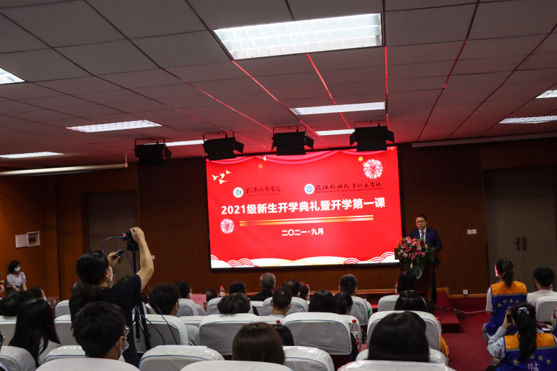 新闻网讯(记者刘书翔 徐书格)9月29日晚,我院隆重举行2021级新生开学典礼暨开学第一课,院长陈建勋发表热情洋溢的迎新讲话,党委书记王军讲授开学第一课,武汉市公安局警官韩怡婷宣讲安全防诈骗知识。副院长徐东平、工会主席吴翠红出席,党政办公室、学生工作处、招生工作处、后勤保卫处等职能部门负责人,各学部主任、党总支副书记、全体新生辅导员以及2021级全体新生参加。学生工作处处长严建主持典礼。
