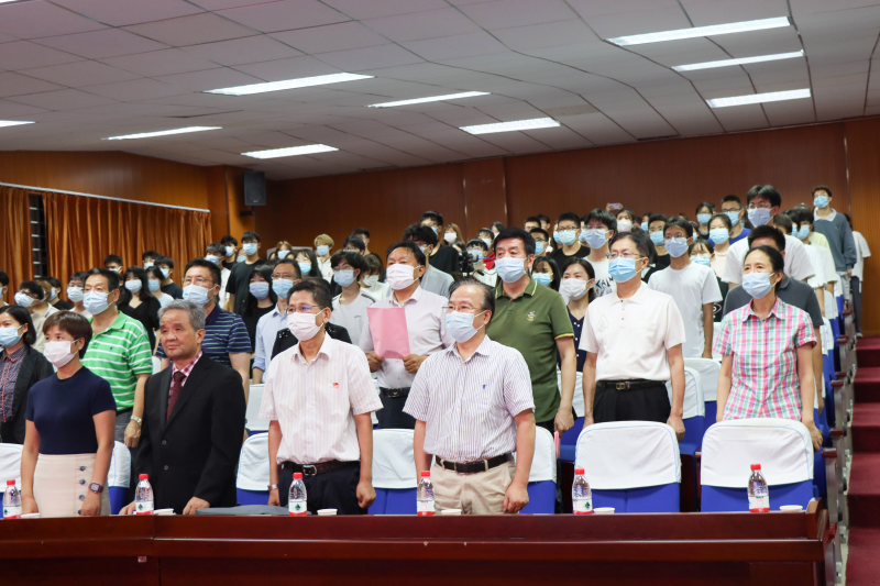 本次开学典礼暨开学第一课采用“线下主会场+线上分会场”双模式,7400余名新生分别在南一(2号)报告厅主会场及自习室分会场观礼,并同上第一课。