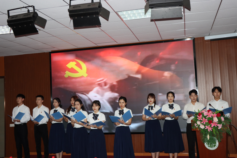 “我们的信仰之炬啊,正在与未来接力,沿着中国道路的瑰丽,续写中国故事的魅力。”青年马克思主义班和校主持队的学生在典礼上表演了诗朗诵《信念永恒》,表达了永远跟党走的坚定决心。