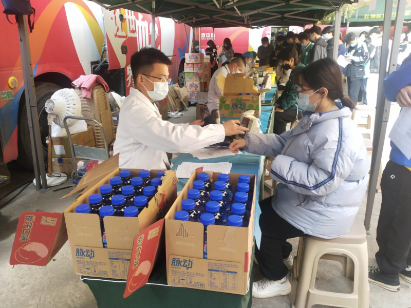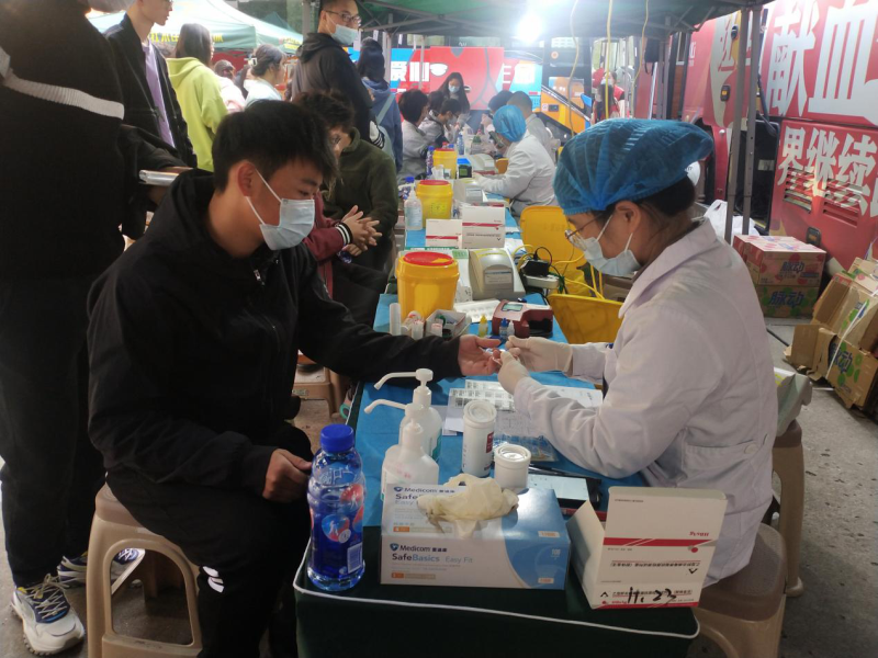 新闻网讯(记者田莉)11月25日,我院外语学部党建会联合武汉血液中心在学子食堂旁广场举办一年两度的“青春热血”无偿献血活动。本次献血人数386人,献血量高达132000ml。这是我院第10年不间断开展献血活动,学生们勇敢地伸出手臂奉献爱心,让深秋充满温暖。