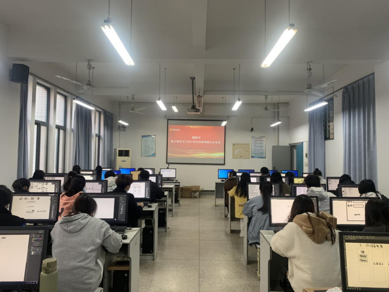 “1+X”数字媒体交互设计职业技能等级认证考试由凤凰新联合(北京)教育科技有限公司组织,采取线上答题、全程跟踪录像的形式,理论与实操相结合,考试全过程做到公平、公正、公开。考试面向数字媒体交互设计,从事需求分析、逻辑建模、细节规划、原型制作、交互设计说明、设计验证等工作,实现移动端APP产品交互设计。数字媒体技术系专业教师担任监考老师,考试过程中学生认真答题,教师严肃考纪,考场秩序井然。