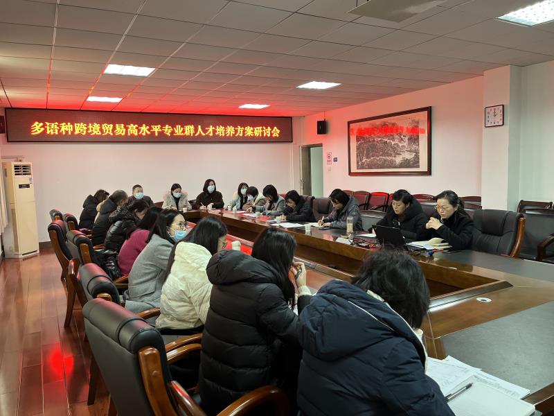 新闻网讯(通讯员 李肖爽)为积极推进我院省级高水平专业群建设工作,优化人才培养模式,打造“外语+外贸”复合型技术技能人才培养高地,学院于1月5日下午在行政楼A315召开多语种跨境贸易高水平专业群人才培养方案研讨会。副院长刘丹出席并发表讲话,财经与商贸学部、应用外国语学部教学副主任、系主任、教务科长、实验教师及学部各专业负责人参加会议。会议由教务处处长张凤秦主持。