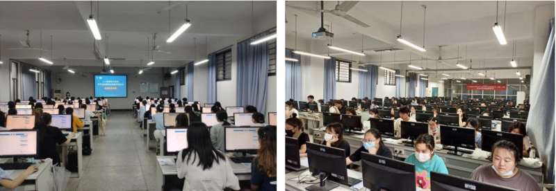 考试时长3小时,考核内容包括理论和实操两部分。应用外国语学部商务英语、应用法语、应用韩语、应用德语和应用西班牙语专业共79名学生参加了考试。学部专业教师刘文、张达阳参与考试筹备及监考工作,教学副主任熊莺到现场检查指导。