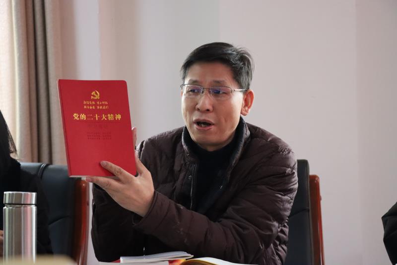 王军指出,党的二十大,是在全党全国各族人民迈上全面建设社会主义现代化国家新征程、向第二个百年奋斗目标进军的关键时刻召开的一次十分重要的大会。习近平总书记所作的报告,深刻阐明了事关党和国家事业发展的一系列重大理论和实践问题,擘画了全面建设社会主义现代化国家、全面推进中华民族伟大复兴的宏伟蓝图,科学谋划了未来五年乃至更长时期党和国家事业发展的目标任务和大政方针。全校上下要迅速把思想和行动统一到党的二十大精神上来,坚持以习近平新时代中国特色社会主义思想为指导,准确把握党的二十大提出的新要求,把党的二十大精神落实到办学治校的各方面,推进学院高质量发展“加速跑”。王军结合学院实际,就如何推进学习贯彻党的二十大报告精神提出具体要求。学院要把学习宣传贯彻党的二十大精神当做当前和今后一个时期首要的政治任务,面向全体党员师生分类分层开展学习培训。党委组织部、宣传部要精心组织好理论学习,进一步发挥中心组示范引领作用,精细制定学习内容,领导干部要当好领头雁,学习先行,带动党员师生创新学习方式,集体学习与个人学习、专题学习与理论研讨相结合。各级党总支、基层党支部要积极组织宣讲活动,思政中心要组织思政教师积极开展党的二十大精神进课堂,做学生品格塑造的“大先生”,做教学科研的“引领人”,做终身学习的“示范者”,推进党的二十大报告精神入脑入心入行。