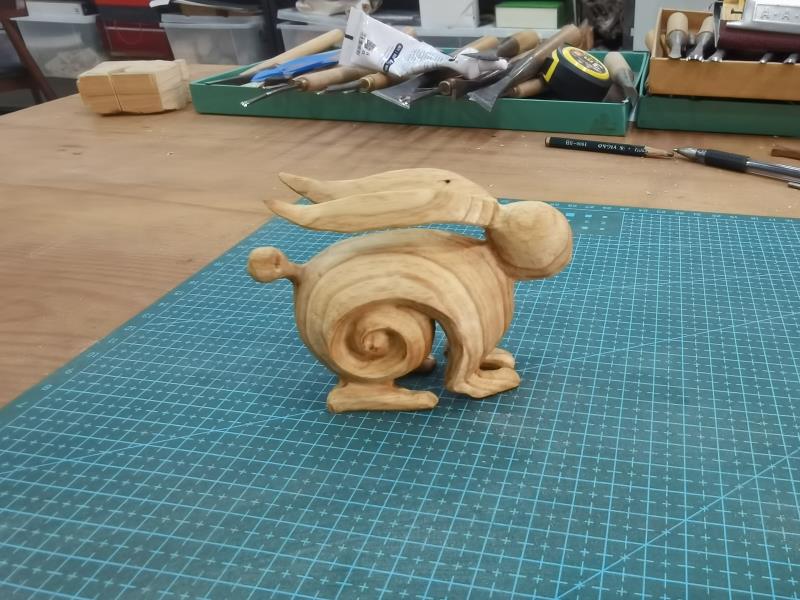 张静作为木雕的非遗传承人,曾先后参加江岸区非遗助力武汉书展、武汉市宣传党的二十大精神非遗作品展,此次也受邀参加了活动。张静紧扣宣传武汉木雕特点,提前精心准备展品,花费不少心思。在她的摊位上,展品样式繁多、种类丰富:有传统的、现代的木雕、圆雕、浮雕、镂空雕、现代文创产品,为湖北省博物馆开发的文博产品,体验课宣传册和张静写的两本关于非遗木雕的书籍......琳琅满目的展览吸引了市民们前来围观。其中,最抓人眼球的非张静摊位上活灵活现的“小兔子”莫属,憨态可掬的模样也吸引了央视记者、省电视台记者们。张静说:“正好是兔年伊始,前三年武汉也一直因为疫情封控、过年都没有今年这般热闹的氛围,为了展示生肖文化特点,为了呼应喜庆的氛围,于是创作了这只沐浴的兔子。”