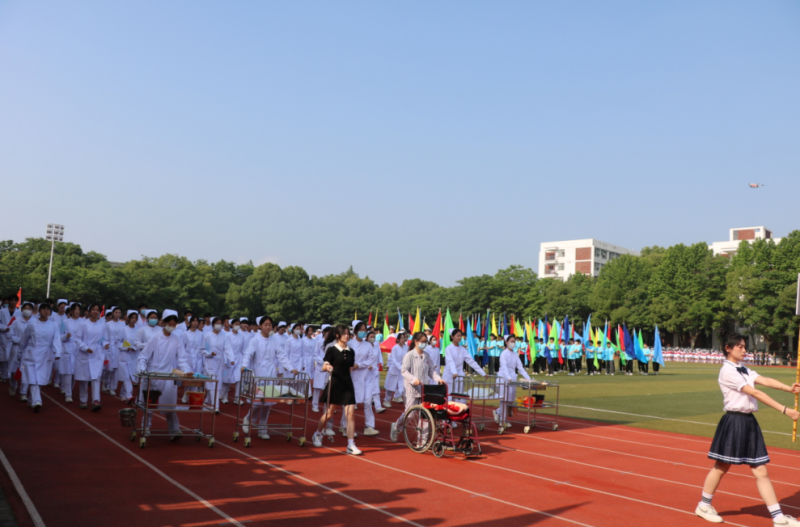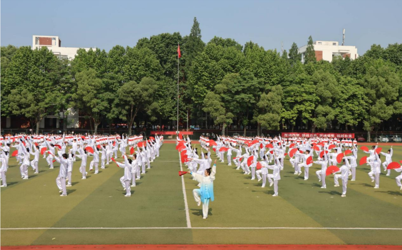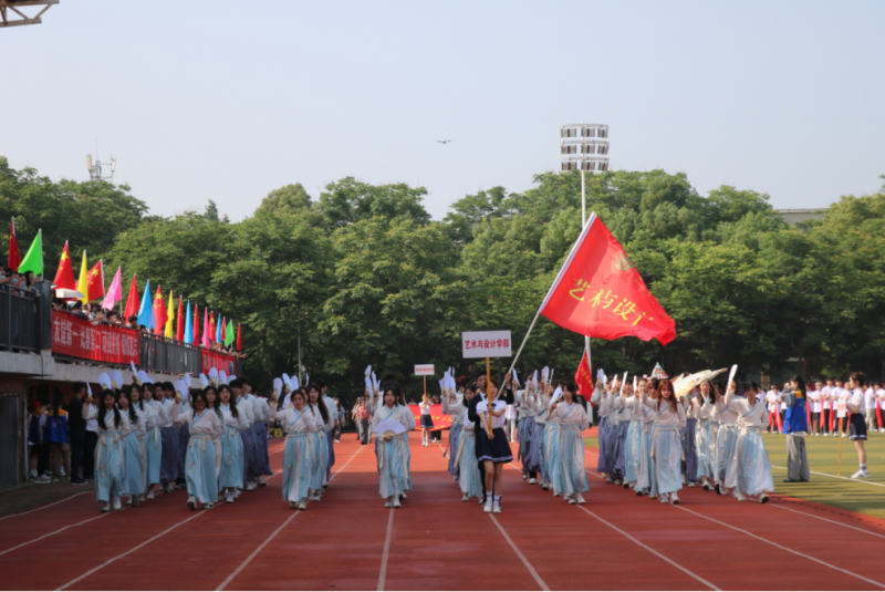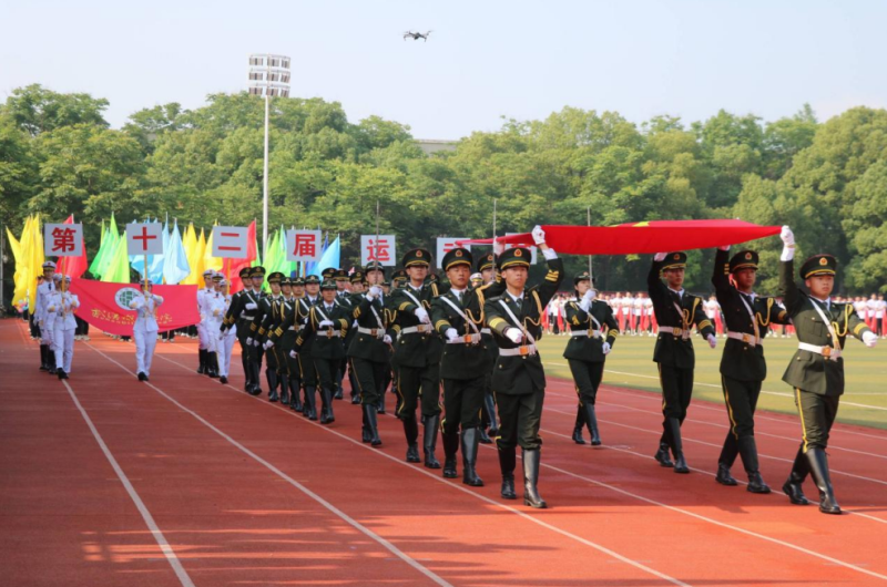随后,身着统一服装的红旗方阵、太极方阵、啦啦队方阵呈现了极富特色和精彩绝伦的表演,红旗飒飒整齐划一、太极拳如行云流水、健身操轻盈律动,为全院师生带来了一场异彩纷呈的视觉盛宴,将整个操场气氛不断推向高潮,操场上不断传来观众的欢呼声、喝彩声。