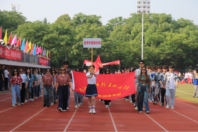 肖军在开幕式上致辞。他代表学院对本届运动会顺利召开表示热烈祝贺,并向全体运动员、裁判员和为运动会积极筹备而付出辛勤汗水的工作人员表示亲切问候。肖军表示,体育是德智体美劳“五育融合”人才培养的重要一环,是实现立德树人根本任务的基础性工程,是素质教育的重要方面。体育运动不仅可以增强人们体质,也有助于培养勇敢顽强的性格、超越自我的品质和勇于挑战的意志,有助于培养竞争意识和团结协作精神,对丰富校园文化生活,弘扬爱国主义、集体主义精神,增强国家和民族的向心力、凝聚力起着不可缺少的重要作用。学院历来高度重视学生体育运动,建有体育类学生社团16个、阳光体育俱乐部11个,还有8个校级体育代表队。校园体育文化节,“新生杯”、“院系杯”篮球赛、乒乓球赛、羽毛球赛、趣味运动会等体育赛事活动,极大地丰富了学生校园课余生活,打造出了学院的“校园体育运动”特色。希望学生们积极响应“每天锻炼一小时,健康工作五十年,幸福生活一辈子”的号召,走下网络,走出宿舍、走向操场,把汗水洒向运动场上,把矫健身影留在竞赛比赛中,将勇往直前、顽强拼搏、精诚团结、锐意进取的体育精神变成促使我们不断成长的精神动力。