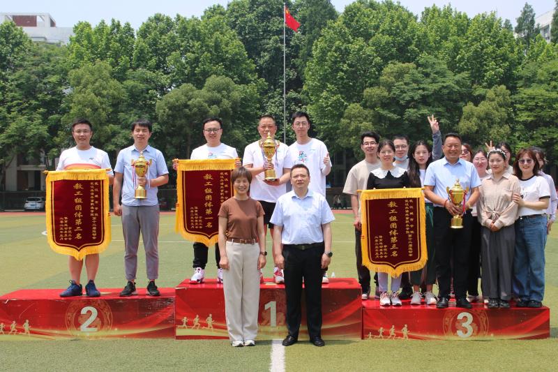 信息工程学部获教职工组团体第一名,机关队获职工组团体第二名,经济与管理学部获职工组团体第三名。