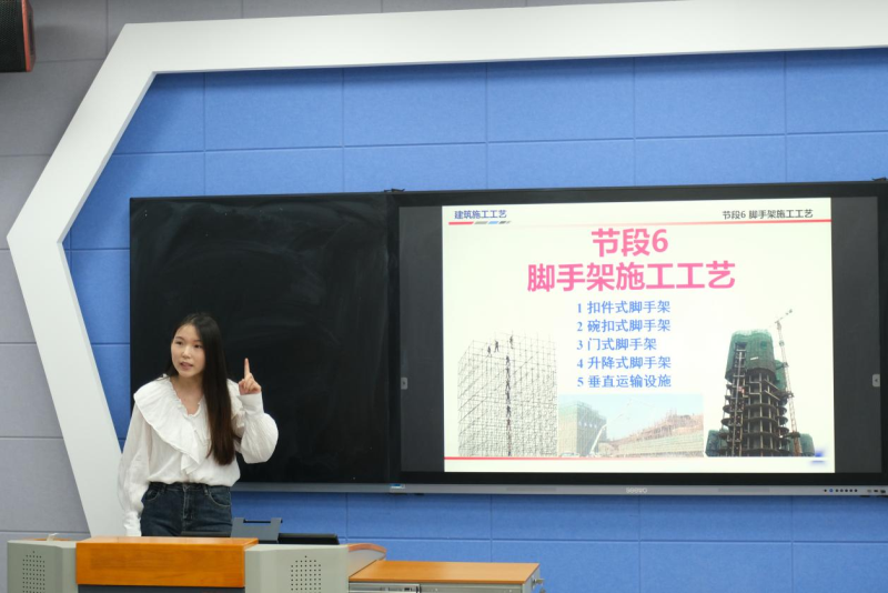 教师们技艺精湛、张弛有度,所带参赛作品制作精美,夺人眼球。讲解教学设计的教师思路清晰,口齿伶俐,从多个方面展现了参赛作品的教学分析。讲授实际教学的教师将节选的课堂内容生动明了地展现在各位评委老师面前。到了教学实施报告展示部分,教师对已有教学实践进行总结,指出已获得的成效并提出需要继续加强的方面。每一位教师都在有限的时间里充分展现了自己作品。最后,评委一一向教师提问并提出建议,教师们回答准确,应对得当,也明白自身的一些不足,表示会继续完善作品。