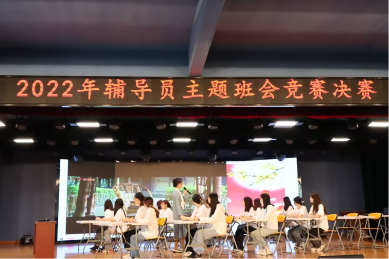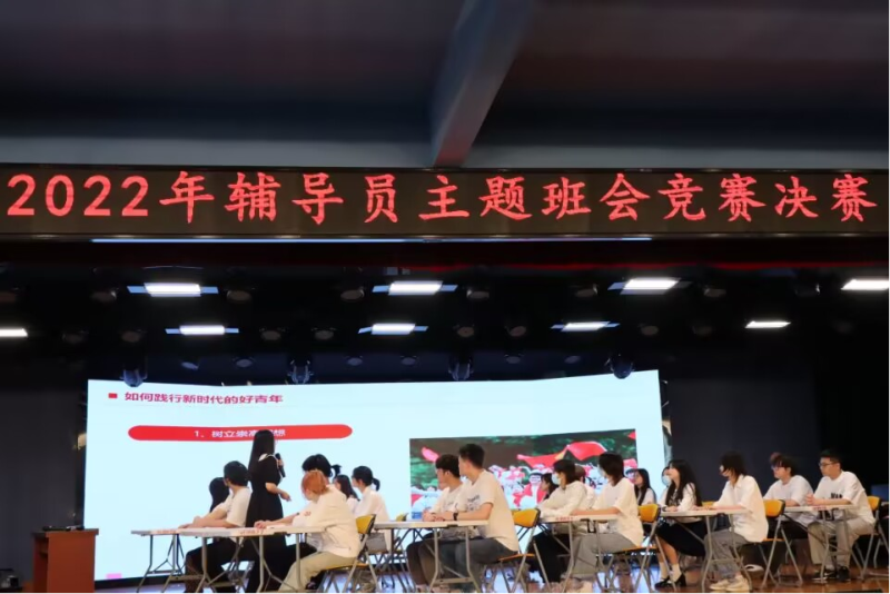 决赛由团委书记、学生工作处副处长王薇薇主持。各学部党总支副书记、全体辅导员及部分学生代表现场观摩比赛。