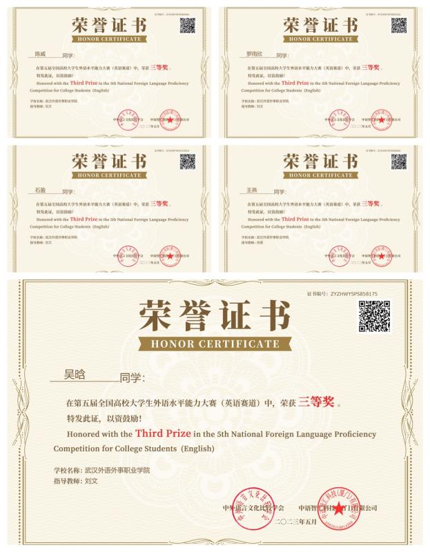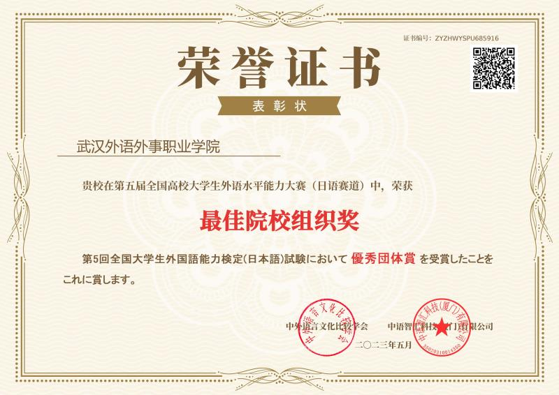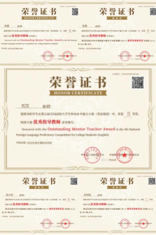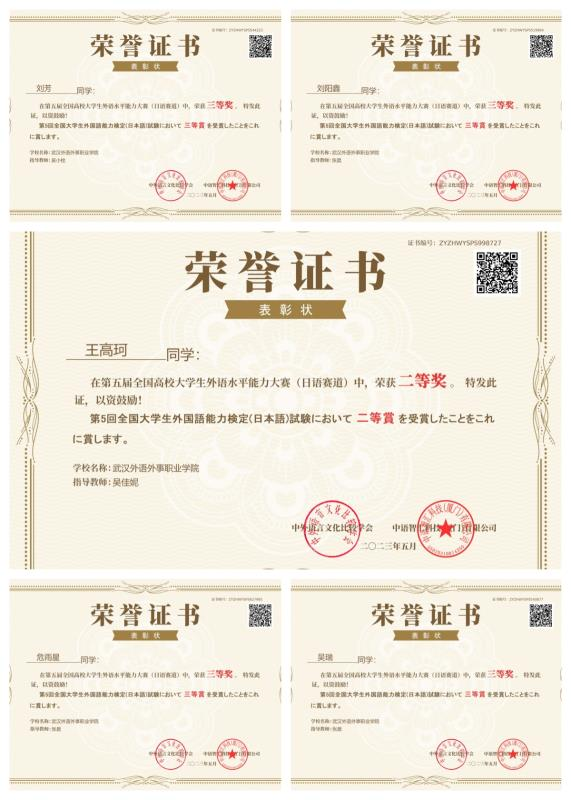 在英语赛道中,陈威、罗雨欣、石盈、王燕、吴晗5位学生获三等奖,刘文、肖晏2名教师获优秀指导教师;在日语赛道中,学生王高珂获二等奖,刘阳鑫、刘芳、吴瑞、危雨星4位学生获三等奖,吴佳妮、张晨、吴小栓3名教师获优秀指导教师。同时,学院荣获“最佳院校组织奖”。