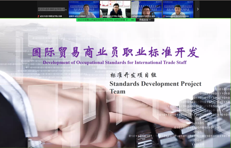 在澜湄-中国教育培训促进联盟和武汉中部集团的大力支持下,我院参与国际贸易商业员(IVET1)制定。项目组队长赵轶从国际贸易商业员职业标准认知、开发准备、开发线路、呈现形式等方面作了全面汇报。