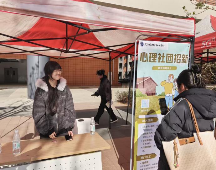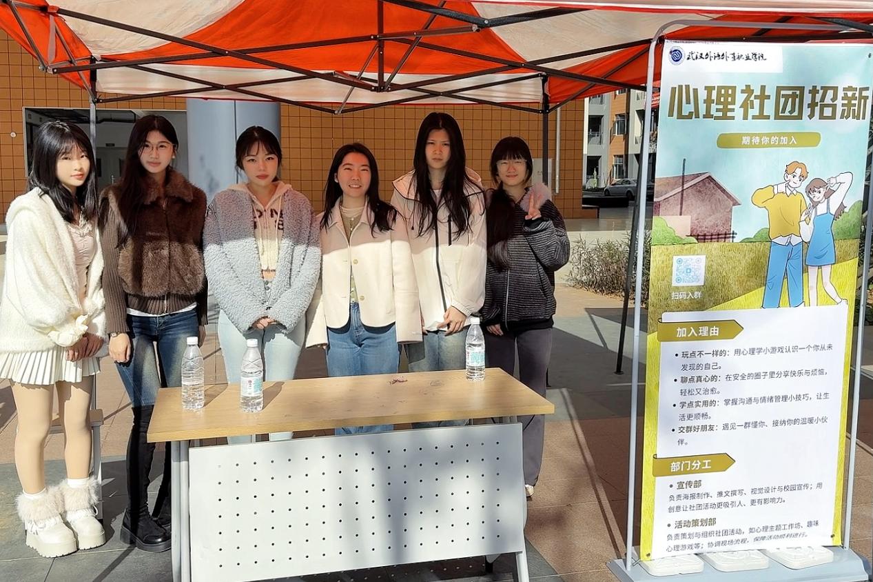 在心理健康教育中心的指导下,为营造积极向上的校园心理氛围、增强学生间的交流与支持,武汉外语外事职业学院心理社团于2025年11月28日开展了招新活动。