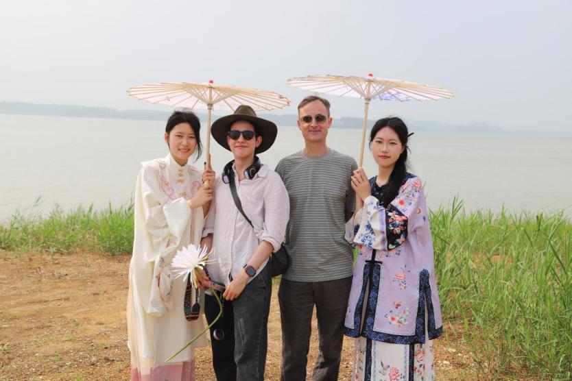 新闻网讯(实习记者 赵雅潇 摄影于秋虹 沈妍 赵雅潇)4月14日上午,由应用外国语学部主办、国际中文志愿者协会承办的“花神节”中国传统文化体验交流活动在江夏区未来家园现代农业园内举行。应用外国语学部的外教老师Emilia和Fred,以及协会的4名指导教师与来自各学部的17名协会成员学生一同体验中国传统文化的博大精深。