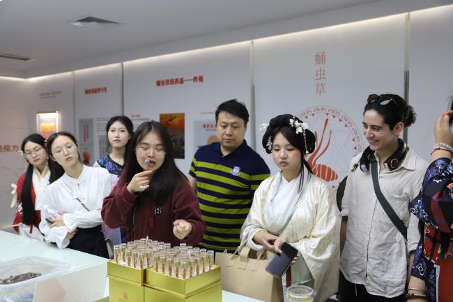 随后,大家一同参观了蛹虫草培育馆和健康生活艺术馆。在虫蛹馆里,大家了解了蛹虫草的培育过程和药用价值,感受中草药传统文化的深厚底蕴。在健康生活艺术馆中,大家品茗论道,体验着中国茶文化。这次的文化体验让参与者们深刻感受到了中国科技研发与健康生活的紧密联系。