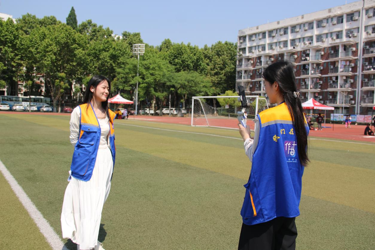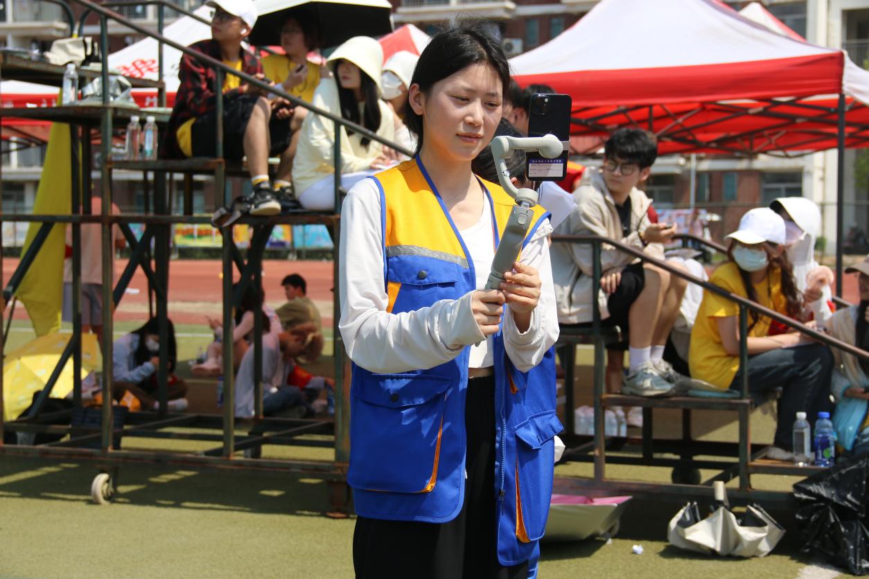 新闻网讯(记者 杨耀辉)“拍视频时要注意位置。”“时间到了,要去拍照啦!”5月16日至17日,在学院第十三届运动会赛场,党委宣传部融媒体中心的35名学生记者,身穿蓝色马甲,手持专业设备,穿梭在赛场的每一个角落,用镜头捕捉每一个激动人心的瞬间,成为这场体育盛宴中一道亮丽的风景线。