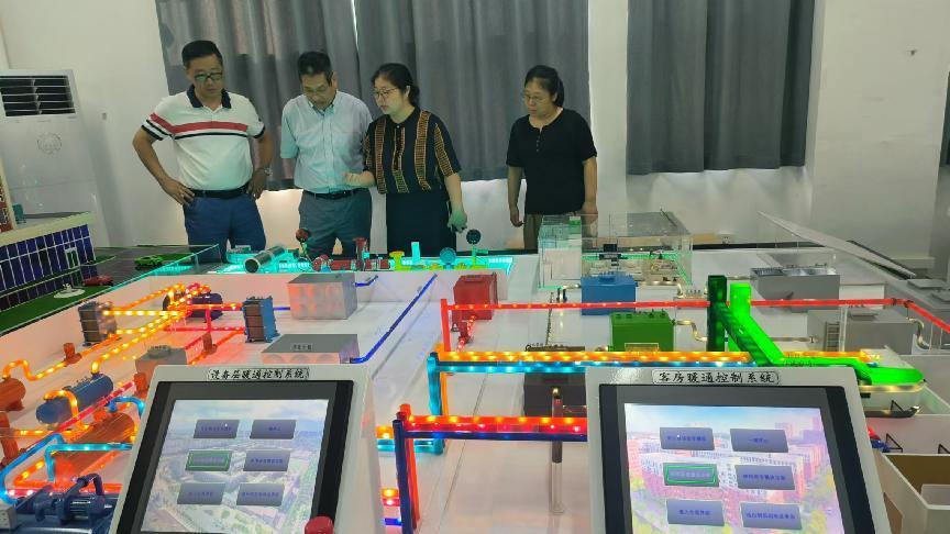 随后,刘秋新还听取了专业老师利用实训平台进行的授课。他观察到,老师们能够灵活运用教学资源,将理论知识与实际操作紧密结合,能够有效提升学生的专业技能和综合素质。课后,他对我校在实训设施建设、教学模式创新等方面的努力表示高度认可。