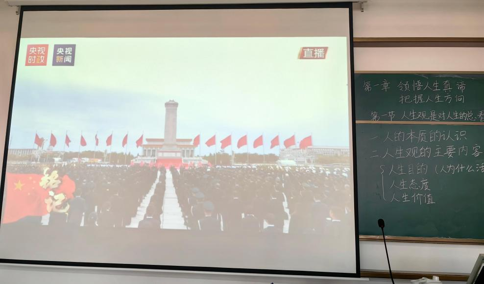 新闻网讯(通讯员 刘锐)2024年9月30日,我国迎来了第11个烈士纪念日。在这个缅怀先烈、铭记历史的重要时刻,我校藏龙岛校区马克思主义学院开展了一次具有意义的思政教学活动。马克思主义学院教师刘锐创新教学方式,通过实时直播习近平总书记在人民英雄纪念碑前献花的庄重场景,将这一历史性时刻引入课堂,转化为生动鲜活的教学案例,深刻引导学生思考英雄精神在新时代的价值。