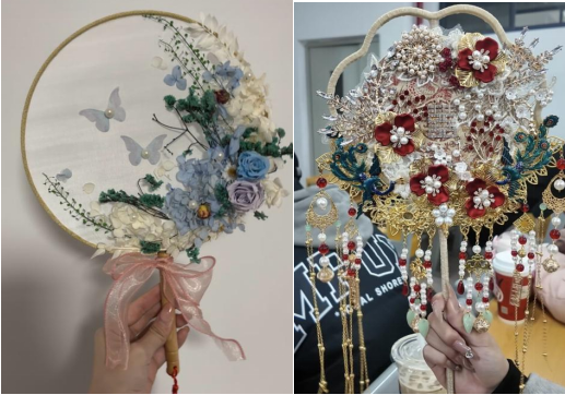 缠花、绒花等手工艺品的制作更是让同学们体会到了传统技艺的细腻与精妙。大家耐心细致地缠绕、组合,一朵朵栩栩如生的花朵在指尖绽放。衍纸和掐丝珐琅的制作则让同学们领略到了不同材质和工艺相结合所产生的奇妙效果,大家纷纷感叹于传统手工艺人的智慧和创造力。