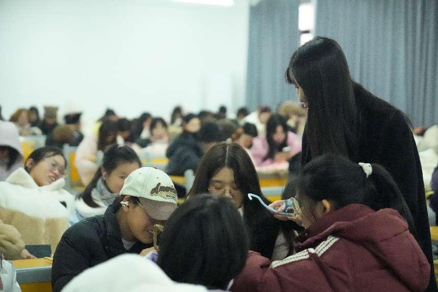 活动当天,张昕玉老师首先向同学们详细介绍了各项非遗文化的历史渊源、技艺特点及传承意义,让大家对传统手工艺有了基本的认识与理解。随后,在张昕玉老师的指导下,同学们纷纷动手尝试,将自己对美的理解与构思融入每一件作品中。