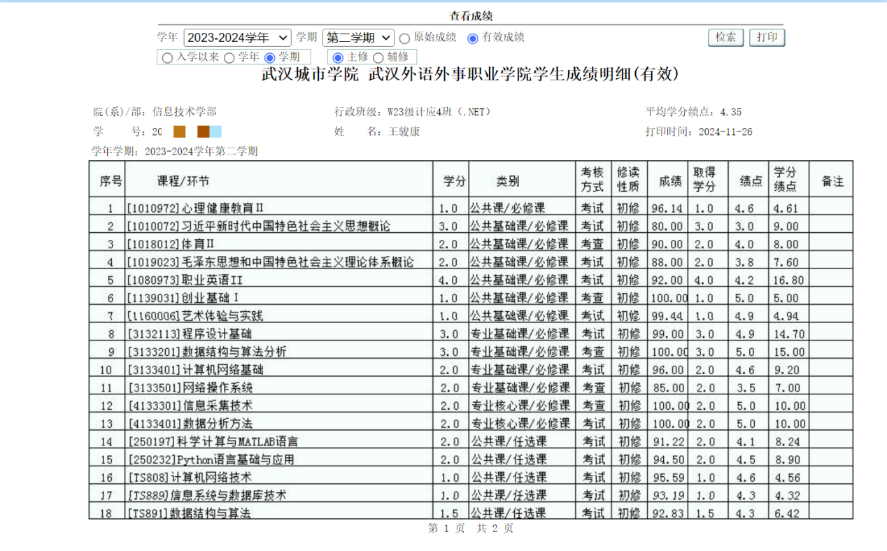 自踏入大学校门起,当部分同学尚沉浸于自由氛围时,王骏康已明确规划未来,决心在享受多彩大学生活的同时,将学业放在首位,力求专升本。他延续高中时期的学习习惯,提前到班预习,课后主动深研专业知识,2023-2024学年图书馆学习时长达1300余小时,多门专业课满分,以专业第三的排名赢得专业素质一等奖学金。