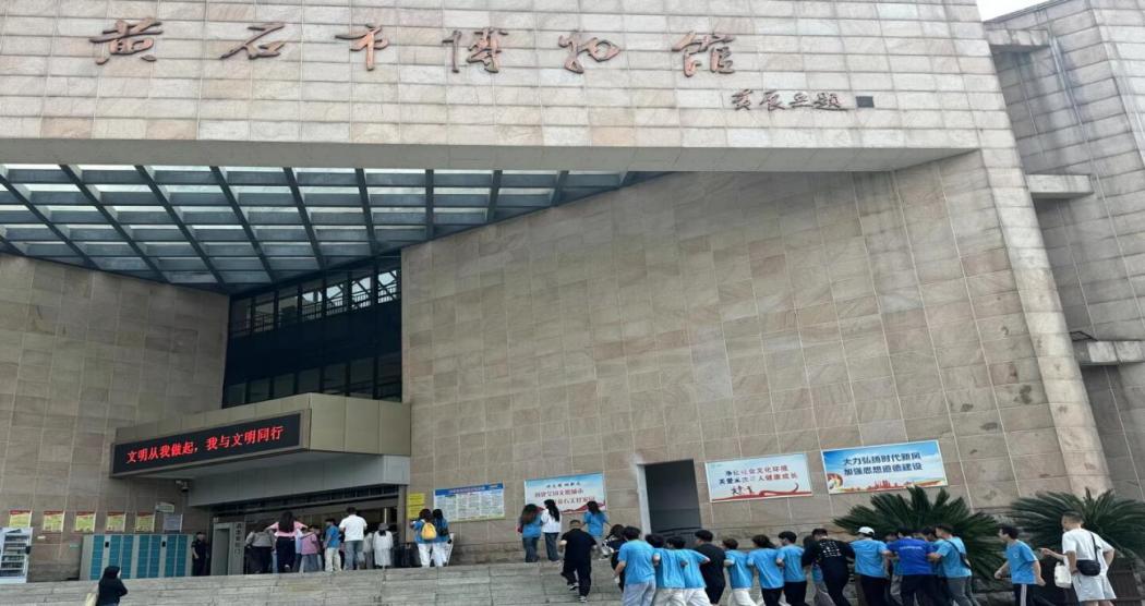 在黄石市博物馆,讲解员以“历史脉络+地域特色”为脉络,带领师生系统了解到现代发展的全貌。从商周时期的青铜文明遗存,到近现代的工业发展成就,一件件文物、一幅幅图片串联起黄石的城市记忆。师生们认真聆听“矿冶文化”背后的故事,主动与讲解员交流历史细节,在互动中深化对“城市文化基因”的理解,进一步增强了对地域文化的认同感与文化自信。