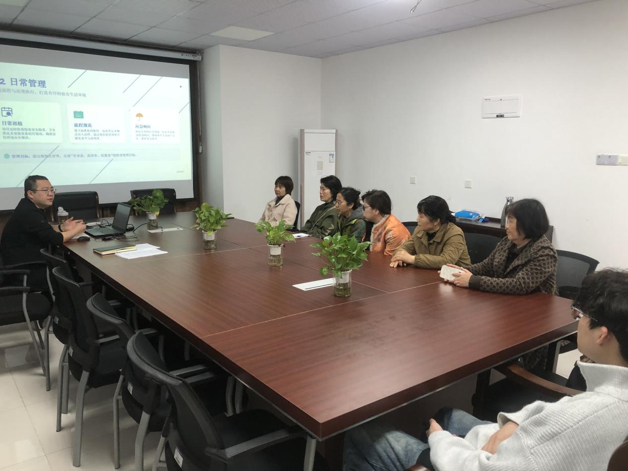 培训重点强调了重点时段值守与校园环境管理要求:学生上下课高峰期间,宿管员、保安人员必须严格执行值守制度,严禁在值班室、岗亭久坐、擅自离岗、脱岗;同时,进一步强化门前“三包”管理责任,宿管员需同步落实责任区域日常巡查与督促工作,全力保障校园秩序井然、环境整洁有序。