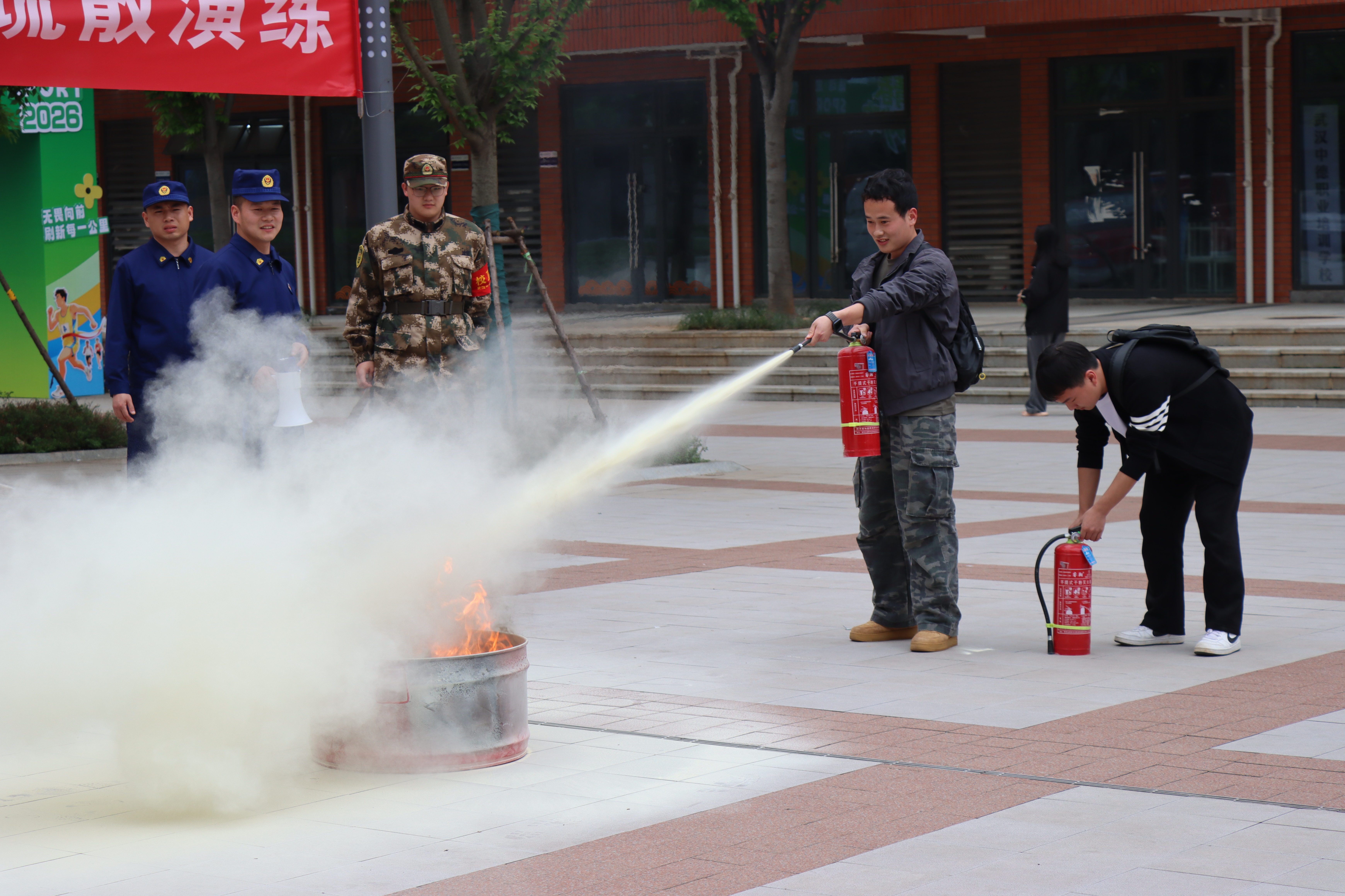 在实操体验阶段,师生们踊跃参与,在消防员的一对一指导下,依次上前操作灭火器扑灭模拟火点。大家认真按照讲解的步骤进行操作,亲身体验了灭火的全过程。通过亲手操作,师生们熟练掌握了灭火器和消火栓的使用方法,消除了面对火灾时的紧张和恐惧心理,提升了实际操作能力。
