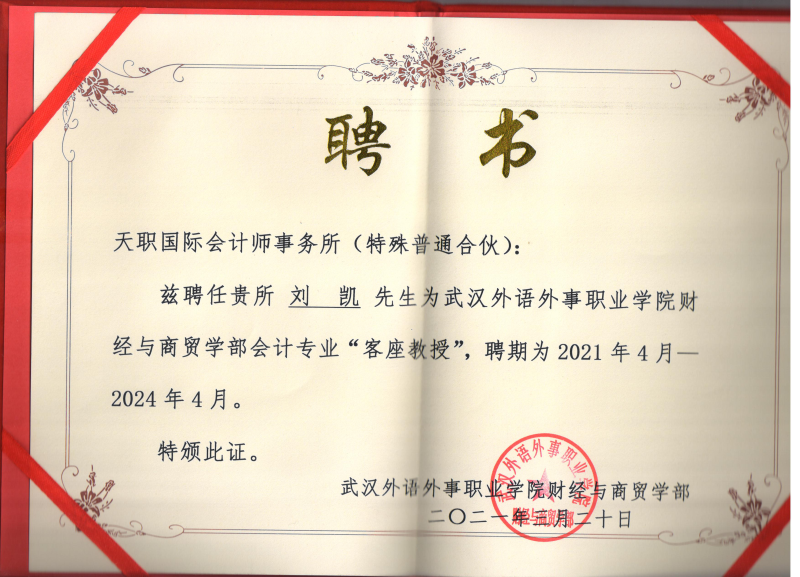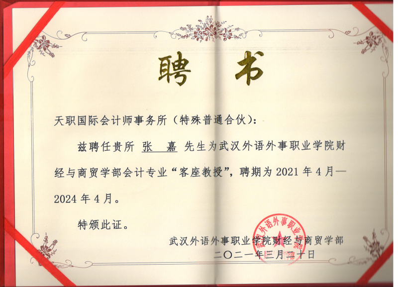 新闻网讯(通讯员王晓宁)为提高人才培养质量,深化校企合作模式,将更多优秀的行业、企业专家充实到教师队伍中来,财经与商贸学部特聘请天职国际会计师事务所所长张嘉、项目经理刘凯担任会计专业客座教授。