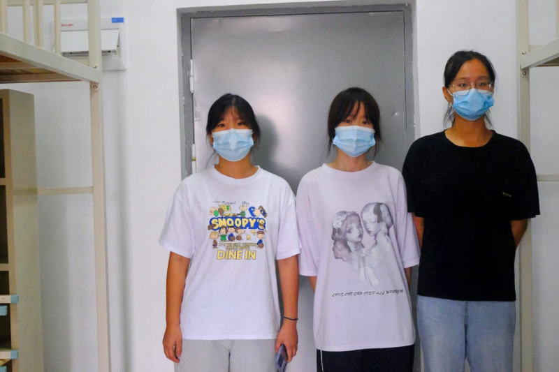 在迎新现场,3名学生交谈火热,他们分别是财经与贸易学部电子商务专业学生刘颖、旅游与管理学部高速铁路客运服务专业学生熊卓妍和婴幼儿托育服务与管理专业学生万怡,她们都来自湖北省天门市。3人在高中期间是关系很好的朋友,经常相约一起学习,现被分在同一个寝室。