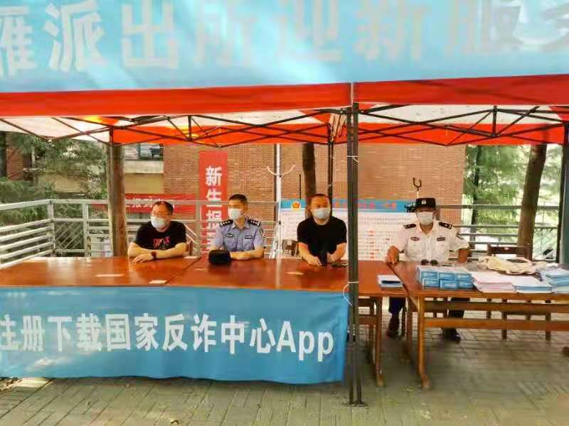 新闻网讯(记者田莉)近日,我院保卫处联合落雁派出所开展新生“防范电信网络诈骗”主题宣传,通过宣传展板、悬挂横幅和现场发放防范电信网络诈骗的宣传资料,向新生和家长进行反诈骗宣传,普及各类防诈骗知识。
