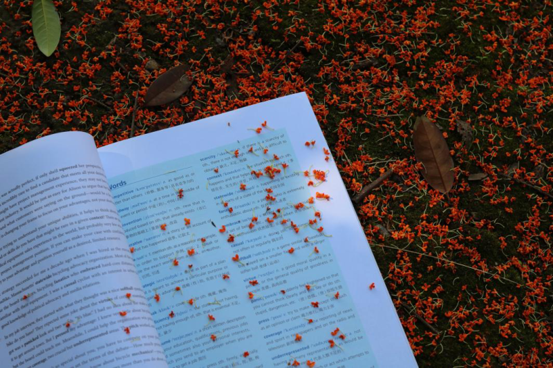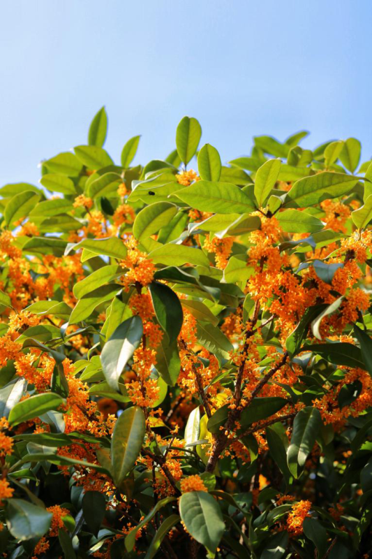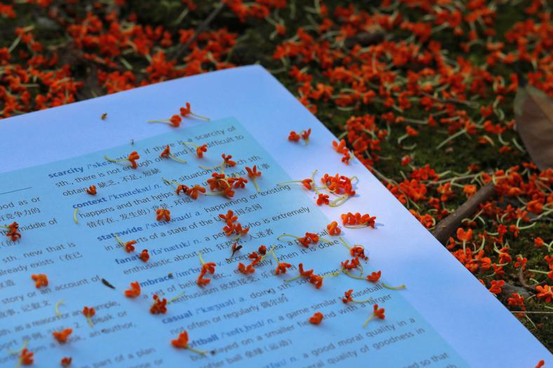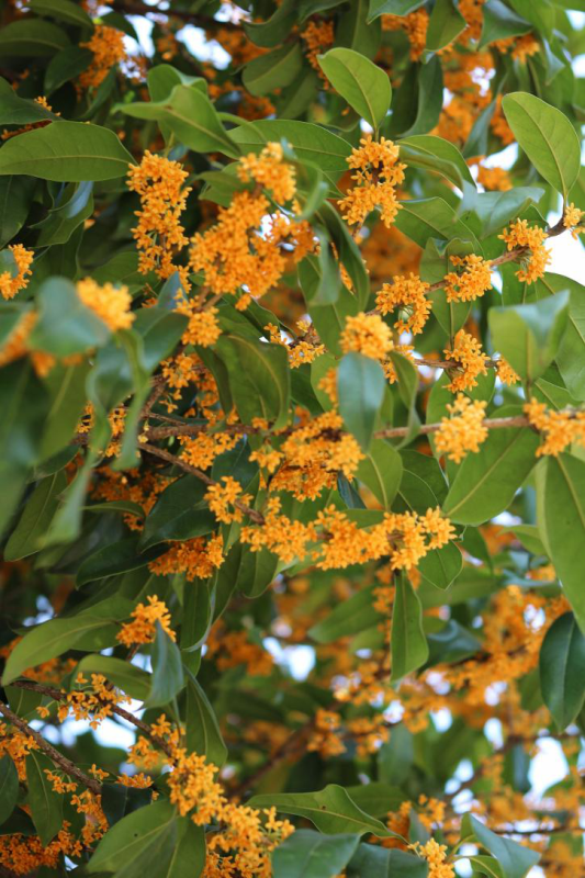上课必经的林荫小道,树上的桂花随风摇曳,洋洋洒洒地落到学子们的发梢、衣帽上,清甜的香气扑面而来。不少学生驻足停留,用鼻尖轻触着桂花,闭上双眼,沉醉其中,静静地享受着醉人的芬芳。点点桂花掩映在绿叶间,一丛丛一簇簇相依相偎着,靠近一嗅,沁人心脾。其中,南七教学楼前的桂花颜色深浅不一,有橙红色的丹桂、有金黄色的金桂、还有淡黄色的银桂。丹桂红得炫目,银桂淡得苍白,金桂黄得淡雅,吸引不少学生下课之后,纷纷前往桂花树旁打卡拍照。