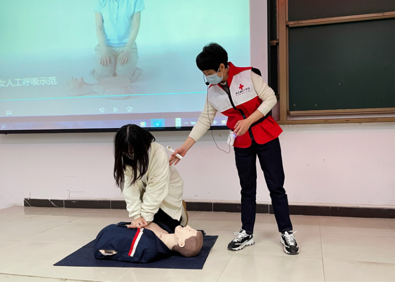 在讲座的最后,学生们兴致盎然地参与了急救体验。陈爱丽老师手把手地指导,使学生们掌握了基本的急救技能,在遇到突发情况时可以进行科学自救和互救,减少因突发事件、疾病、灾害等带来的伤害,切实为保障人们的生命安全和生命健康服务。而学生们通过这次学习,则更好地了解红十字会,进一步掌握了心肺复苏、气道梗阻等日常救护知识,纠正以往错误的认知,做好时刻“我救人人,人人救我”的准备。(院团委供稿)