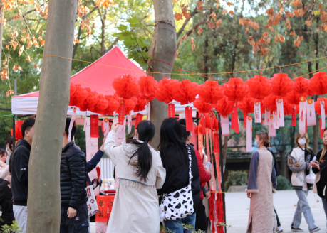 新闻网讯(记者刘晨洋 实习记者张佳鑫)弘扬中华传统优秀文化,展现书法艺术魅力。11月29日至12月3日,我院墨溢东湖书画协会在食堂旁广场组织开展猜灯谜、送春联活动。