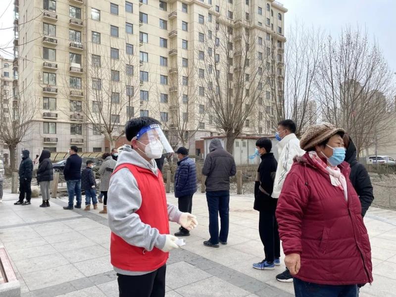 宋金泽在参与了社区疫情防控知识的培训后,开始对社区外来人员进行登记消毒,并为大家宣传疫情防控措施。在全市统一实行的大筛查中,他每天早晨6点到达集合点,根据具体筛查情况组织居民下楼做核酸,对于身体原因不方便下楼的居民,他主动上楼挨家挨户给居民做核酸。