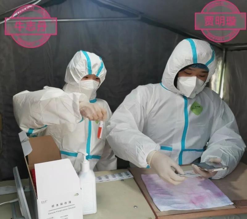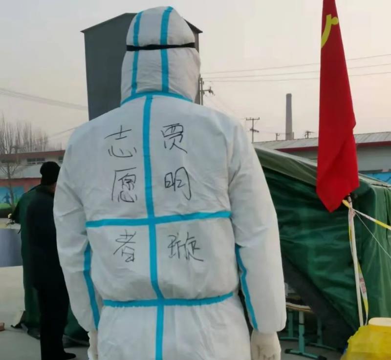 在核酸筛查中,贾明璇主要负责筛查人员的登记和维护现场秩序,并对场地及时进行消毒。他们每天凌晨5点到达现场,身着防护服进行准备工作,虽然穿着防护服在工作中很不方便,但是没有一个人喊苦喊累。工作人员的负责,志愿者们的认真,群众的积极响应,使得工作进行得既迅速又顺利。
