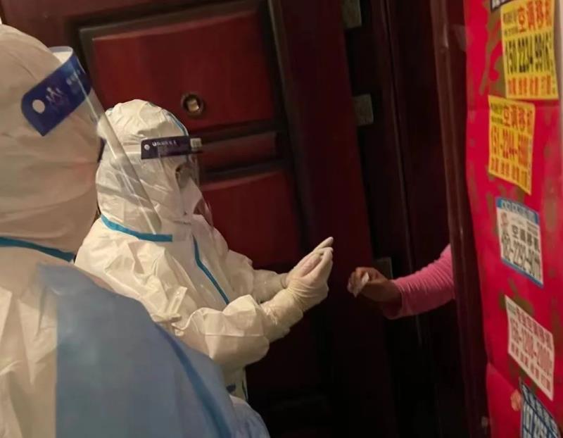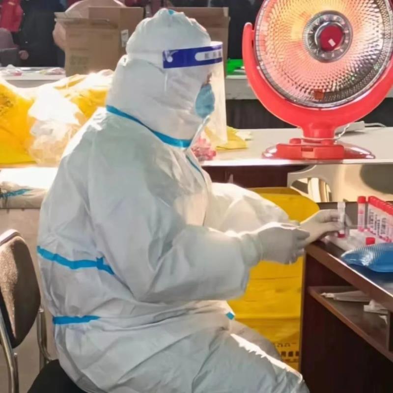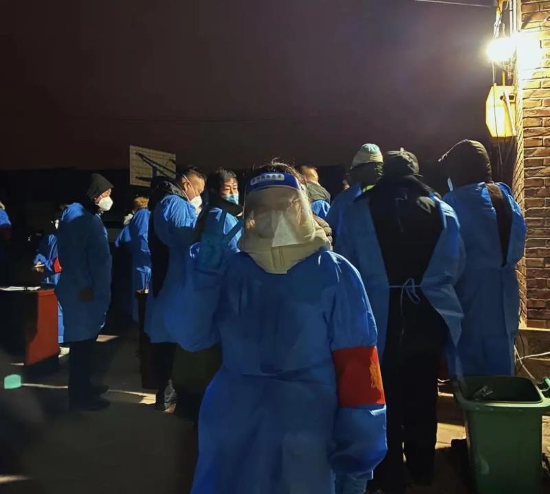 在核酸检测中,从引导居民排队、维持检测秩序、信息集中登记到入户排查,都是张莹他们社区志愿者需要做的工作,有时候还需要安抚老人与小孩儿的情绪,确保核酸检测顺利进行。让她印象最深刻的是有一天,志愿者5点半之前集合完毕,6点开始工作,-10℃的天津又黑又冷,她穿着臃肿的衣服再套上防护服,行动起来比平时要吃力很多。