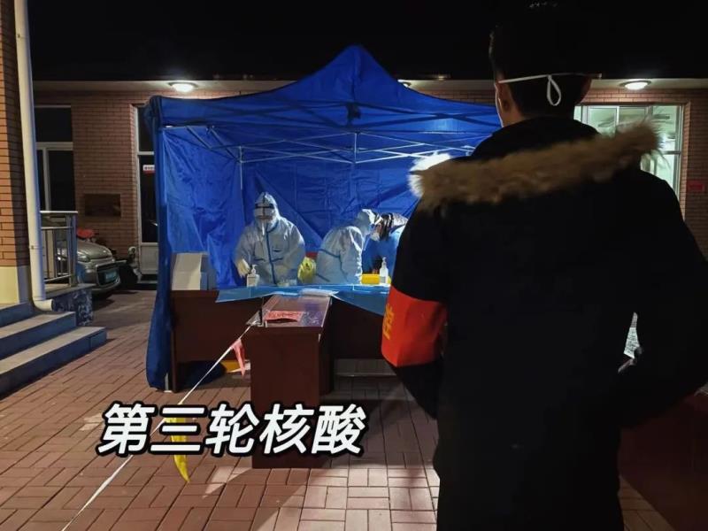 在核酸检测现场,冯笛顶着四五级的西北寒风,帮助居民有序进行核酸检测。大筛过后,他组织招募了300多名志愿者,连夜赶制上百张通行证。又马不停蹄地赶到“一家亲”办公室,协调各社区负责人一起打印、盖章、填写信息等。在30多个小时的高强度工作下,仅吃了一桶泡面。