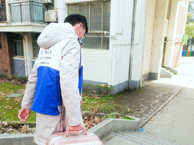 宿舍楼下,志愿者们接过同学们沉重的行李,通过平凡的一双手减轻同学返校路途中的疲惫,温暖大家的心灵。