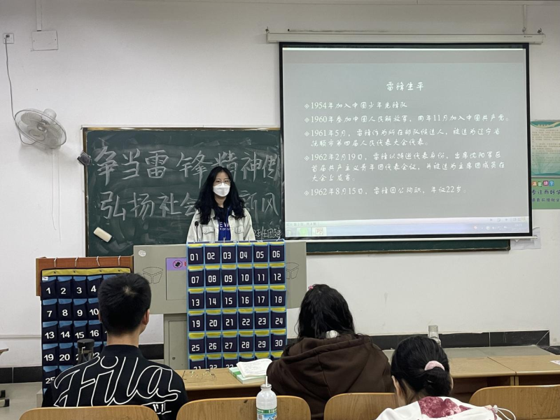 “雷锋的身世很苦,年仅七岁就成了孤儿,克服重重困难成功入伍。在部队期间,他努力工作,积极奉献,服务他人,在报纸上发表了诸多文章。其‘螺丝钉’精神熠熠生辉,荣获‘节约标兵’‘模范共青团员’等称号……”在南二教学楼2302教室里,2021级护理学2班学生欧苏瑶向大家讲述雷锋的故事。她以了解雷锋身世、解读雷锋精神为切入点,引导学生们思考如何以实际行动践行艰苦朴素、无私奉献、严于利己的雷锋精神。精彩的演说赢得台下阵阵掌声。
