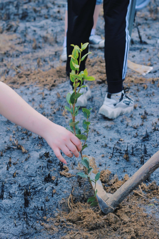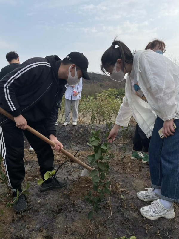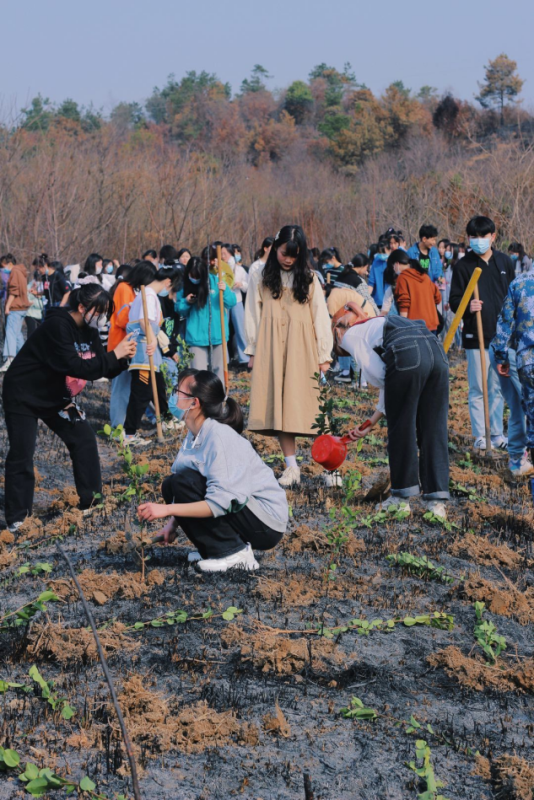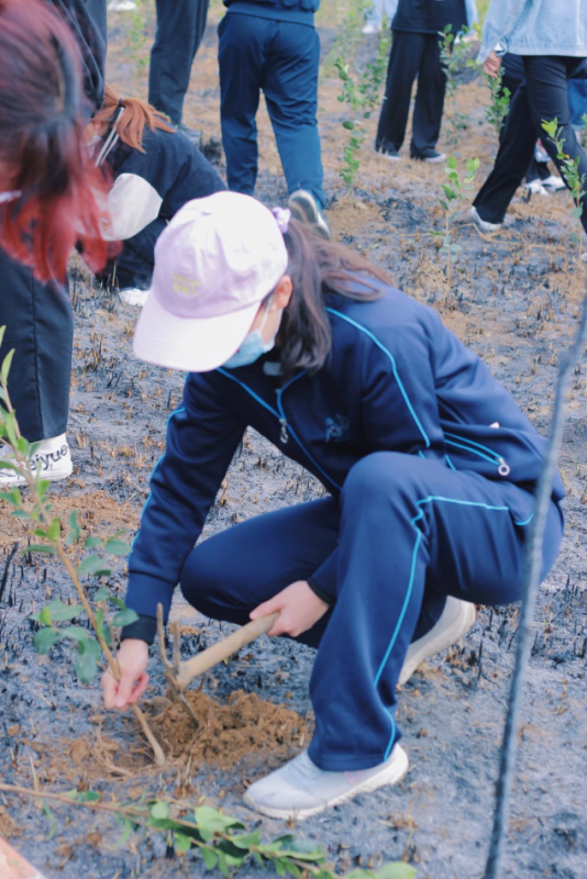 上午9点,活动正式开始。学生们手持铁锹和水桶,有的负责挖坑,有的负责扶着小树苗,还有的负责填土,将一棵棵充满生机和希望的树苗种植好后,浇灌生命之水,最后在种的树苗上挂上带有自己名字的吊牌。学生们干劲十足,汗流浃背,当看见一棵棵亲手种下的树苗在微风中摇曳,无不露出幸福的笑容。活动结束后,学生们纷纷与小树苗合影留念。