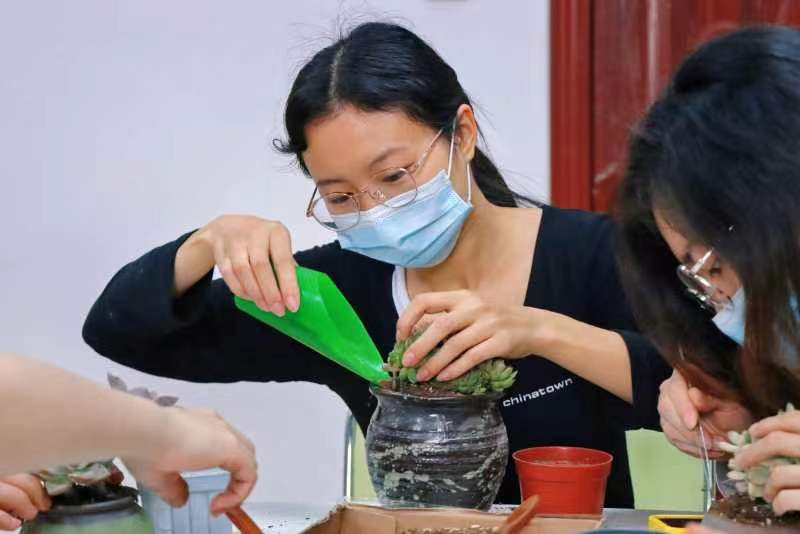 新闻网讯(记者雍露 摄影吴冬丽)为帮助教职工释放压力、舒缓身心、享受自然和生活之美, 5月20日中午,由校工会举办的“工会活动月”系列活动之一——“抚慰心灵,指尖绿动”教职工绿植栽培减压活动在学院心理健康教育中心三楼拉开序幕。