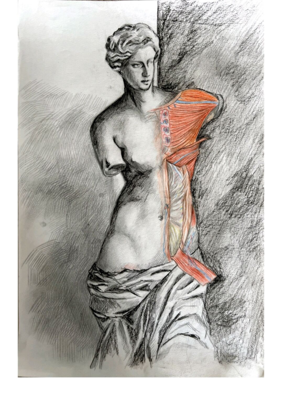 此次大赛吸引了广大学生报名投稿参赛,涌现出许多优秀作品。学生们纷纷挥舞着手中的妙笔,用笔墨将人体结构与人文美学相结合,揭示人类生命的奥秘,诠释学生们对于人体艺术的独到见解,在落笔处走进生命的奥秘。