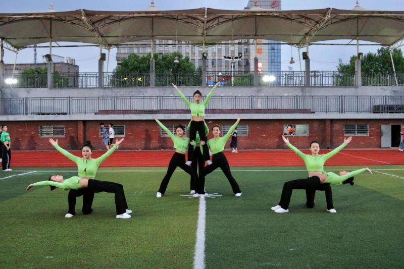 随后,经济与管理学部代表队等6支队伍在欢快动感的乐曲声中轮番上场。健美操比赛中,7支队伍队形既变化迅速又穿戴整齐,随着节拍踏着动感的舞点,弹跳着轻盈的脚步,身姿律动,动作优美,整齐划一,展现出青春风采。她们举手投足间满满的自信与独特的魅力,富有激情的表演,给师生们带来了一场精彩绝伦的视觉盛宴,赢得了现场观众的阵阵掌声。