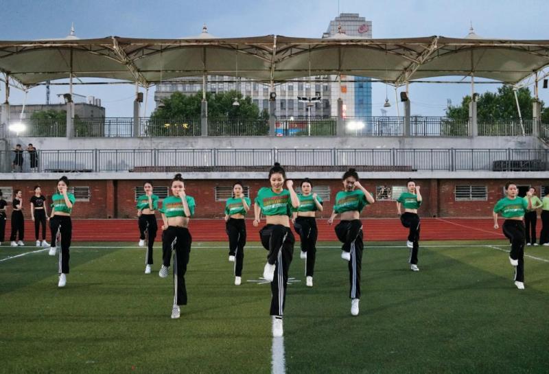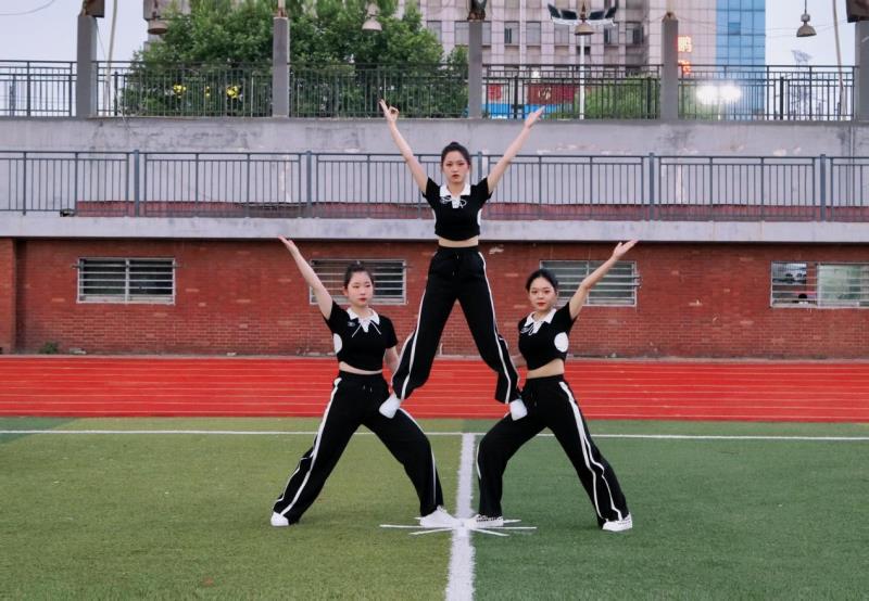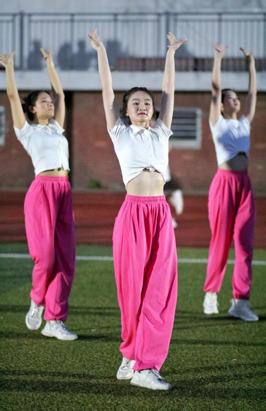 在观众热烈的鼓掌和呐喊声中,率先登场的是医学部代表队,3名参赛选手身着靓丽服装,面带笑容,伴随着音乐翩翩起舞,成套动作腾空跃起、旋转飞舞、整齐划一,点燃了比赛的激情。